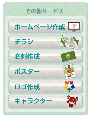 チラシ印刷以外にも、名刺やパンフレット、ポスター・ロゴ作成・キャラクター作成・ホームページ作成などをさせていただいております。お客様のご希望に合うものをお選びいただければと思います。ホームページとチラシ2つを使うことで、広告としての戦力も高まりますので、是非ご検討ください。