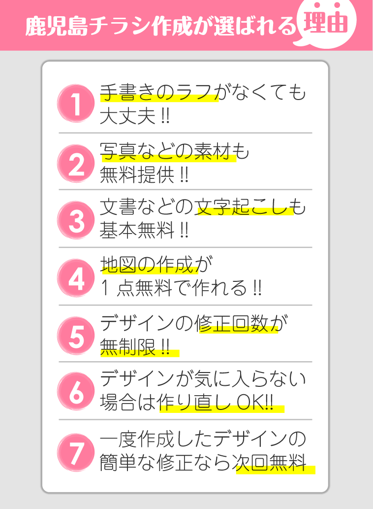 鹿児島チラシ作成のチラシデザイン、チラシ作成、チラシ制作、チラシ印刷の強み